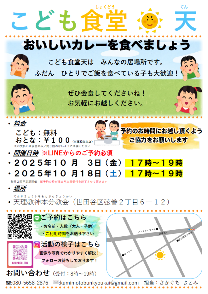 10月の子供食堂の開催日時は